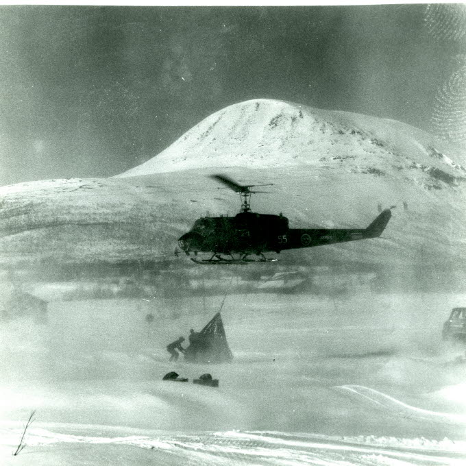 ”There was however no more time to think about it, just to open the doors, step into the snow cloud and rush to our temporary defensive positions. As soon as we were out and taking cover, the helicopter accelerated, and to the characteristic thudding sound from the large two-bladed rotor the HKP 3, disappeared into the whirling snowflakes and vanished above the treetops. Left behind were two groups of conscripted soldiers hearing the fading sound of the helicopter. They realised that even though their survival exercise was probably only to be shorter (which it actually was), than those of their rivals, it had been much more memorable and dramatic, something we would remember for the rest of our lives.”