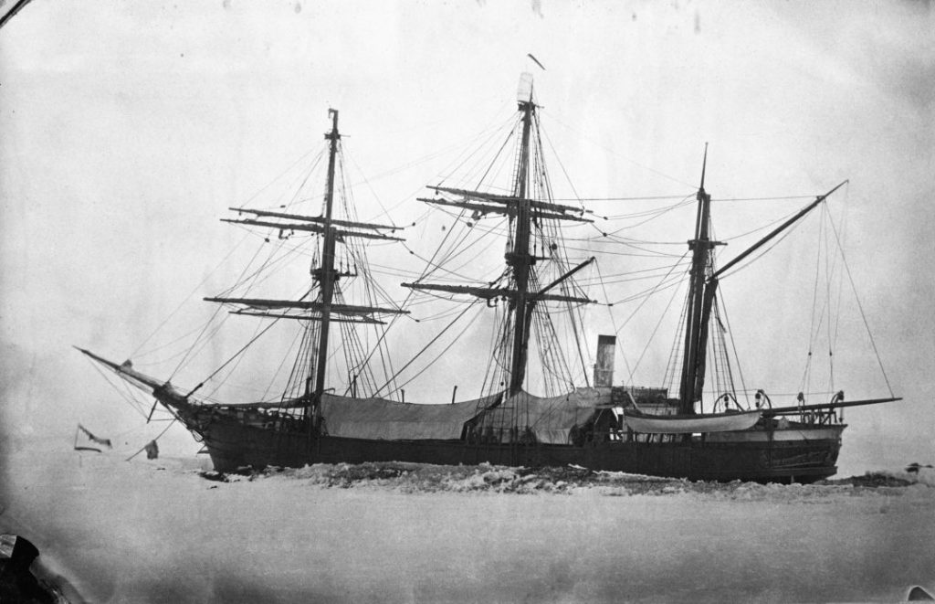 Fartyget Vega tillfälligt fastfruset i isen. Fotot taget av Louis Palander: Källa Digitalt museum
